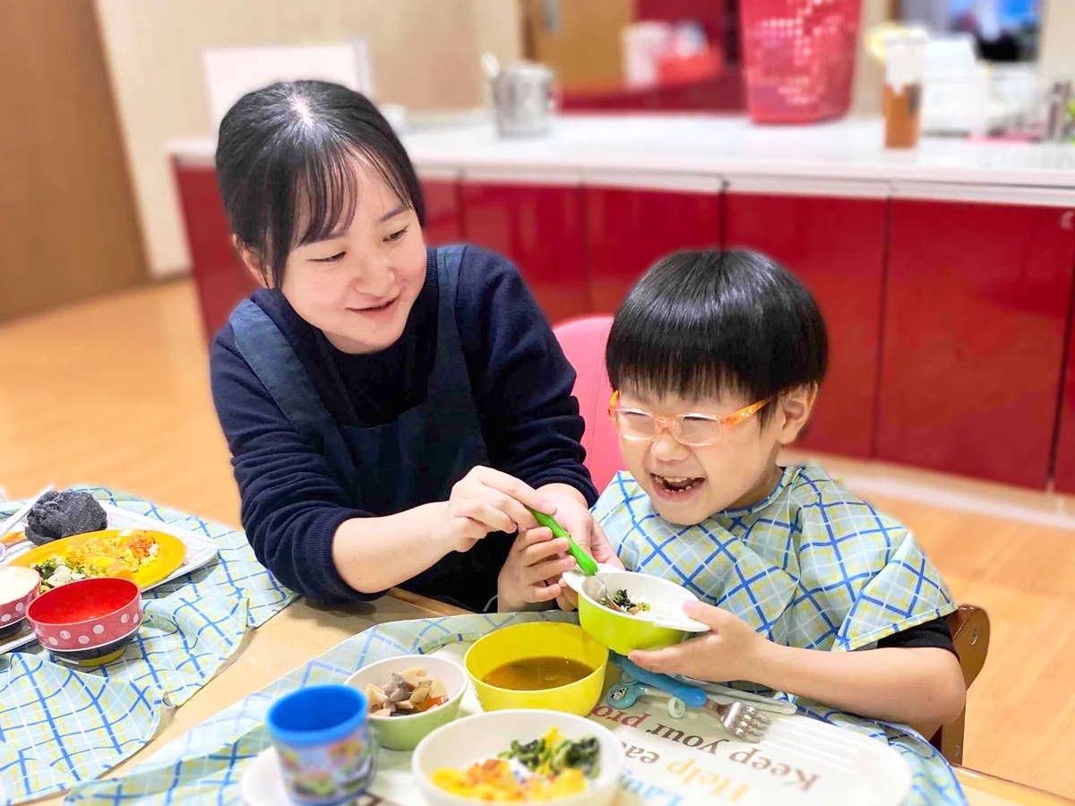 一緒に食事を楽しみながら、「ありがとう」「ごちそうさま」の気持ちを育てます。